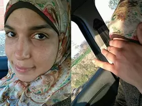 Arab babe in hijab plays with herself in the car