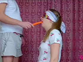 Step Brother tricked his sister when she passed a challenge with food and seduce her to blowjob and first sex! - Nata Sweet