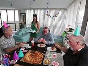Seven grandpas gang bangs teeny blonde at a meeting